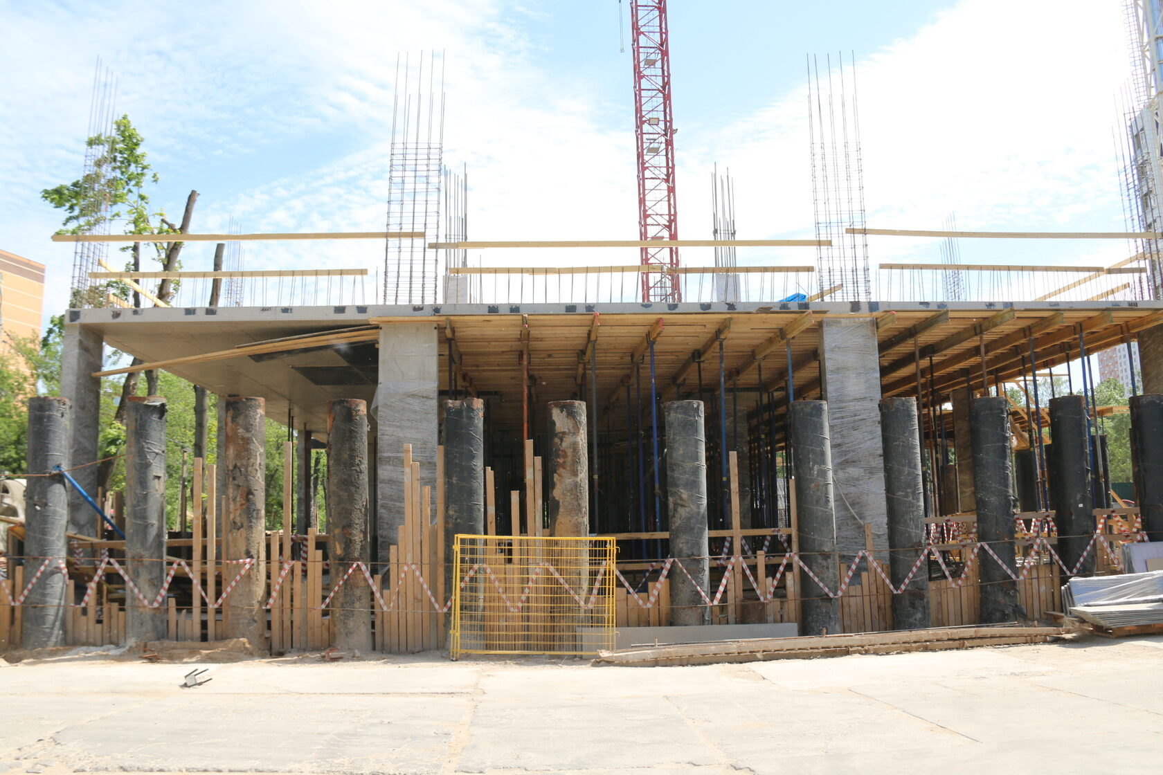 Возводятся железобетонные конструкции 1-го этажа
